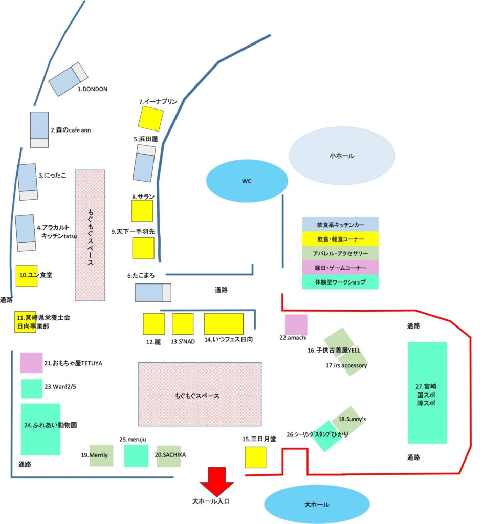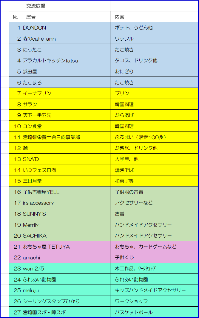 食べ物や小物販売、子どもたちの遊びの場が待っています