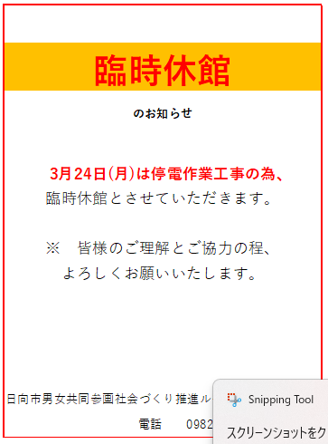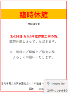 臨時休館のお知らせ